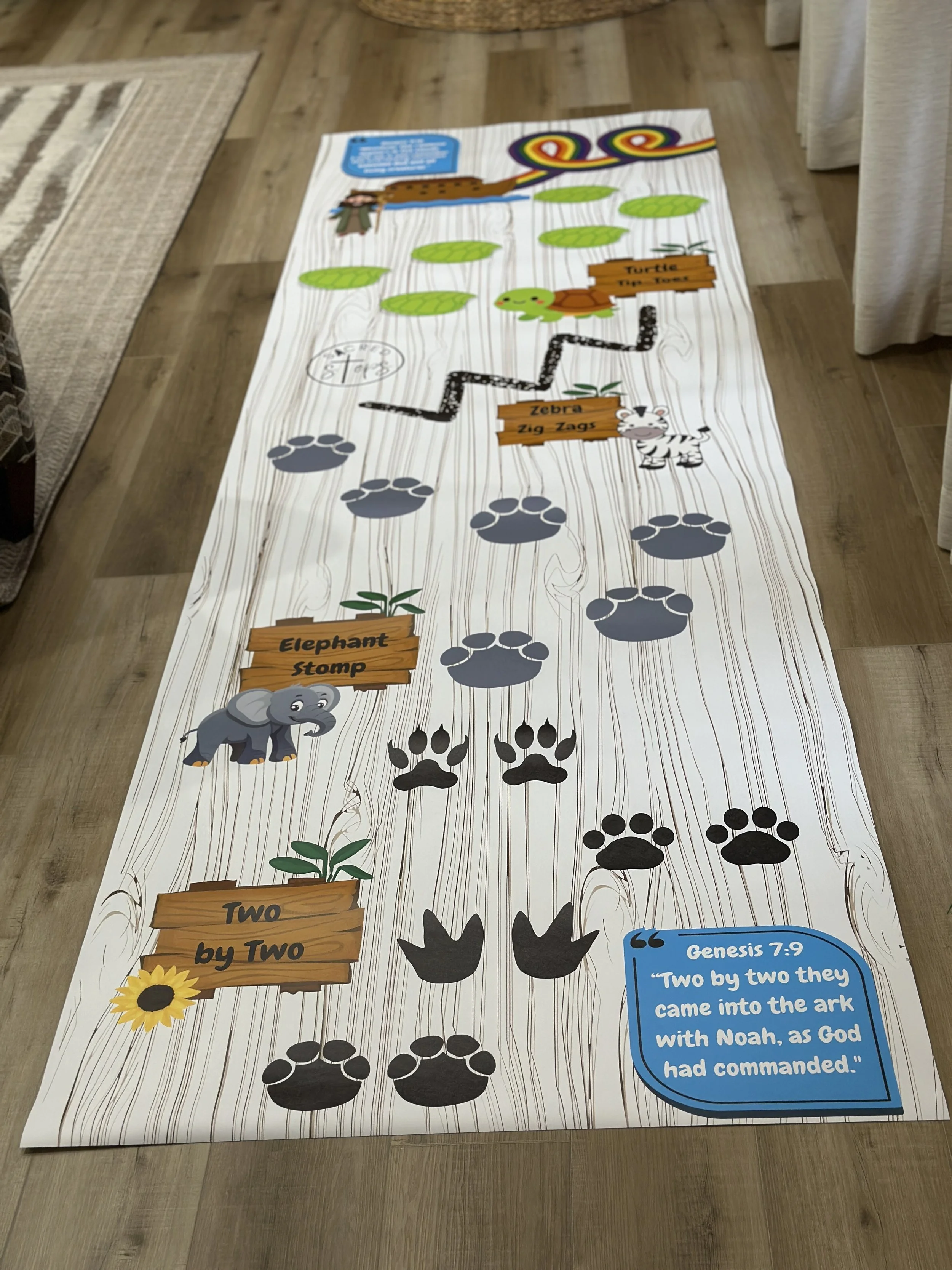 Inspired by Genesis 7:9, this path intentionally weaves faith into movement, helping children connect scripture with purposeful physical activity throughout their day.